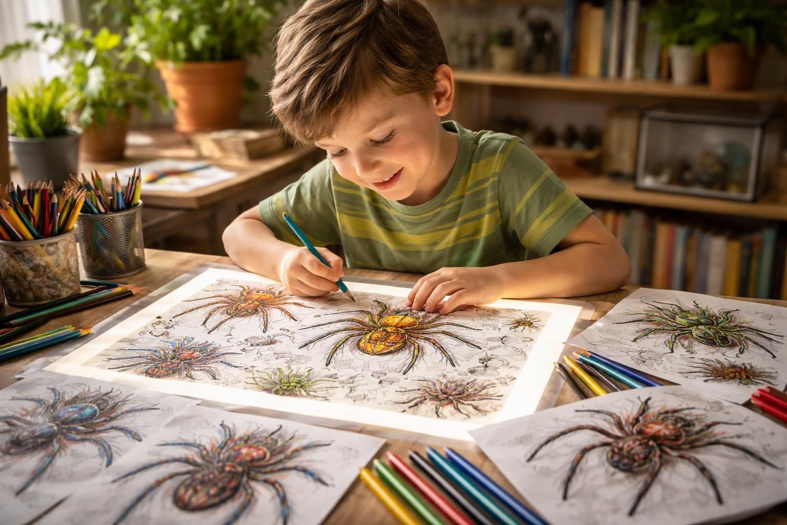 - Création d’un livre de coloriage thématique : Rassemblez des illustrations d’araignées issues de différentes espèces. Les enfants peuvent colorier chaque page tout en apprenant des faits sur chaque espèce.