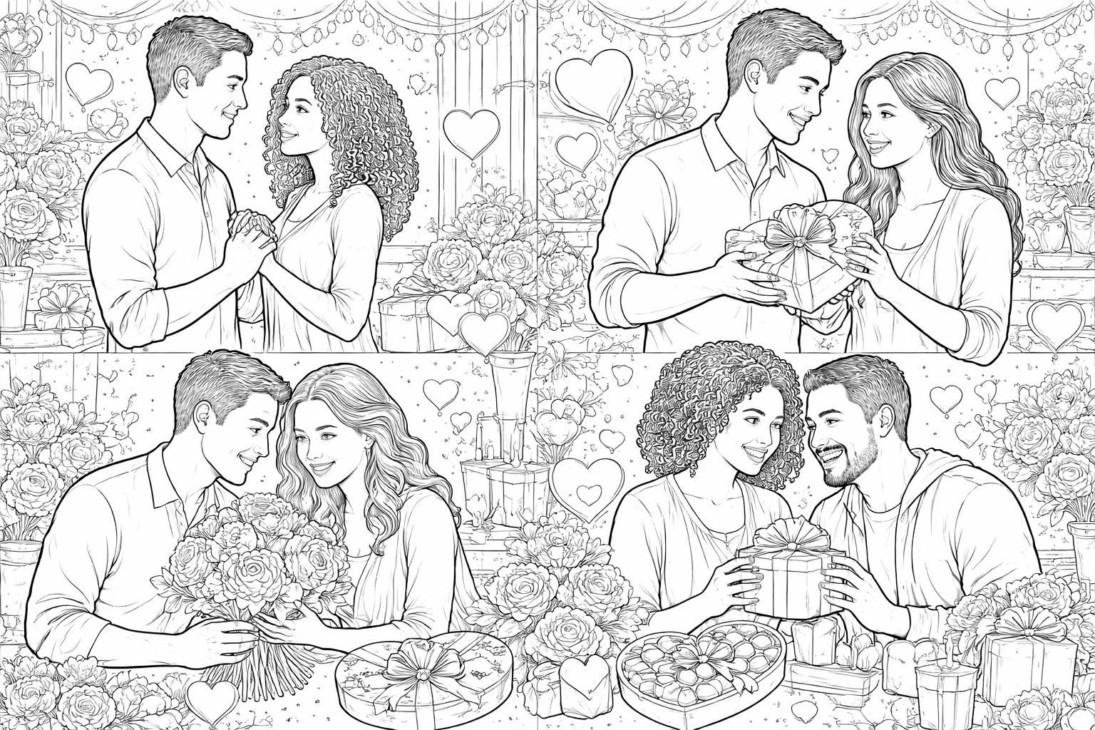 Une autre facette importante est la créativité. Les dessins à colorier de la Saint-Valentin, avec leurs motifs variés de cœurs, de fleurs, et d’autres éléments symboliques, offrent un terrain fertile pour laisser libre cours à l’imagination. Les enfants peuvent inventer des histoires autour des personnages qu’ils colorient, enrichissant leur créativité narrative.